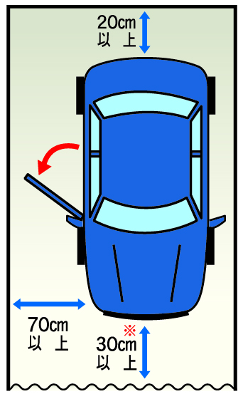 将来の車の買い替えも考慮して、敷地に余裕があるようでしたら、ワンサイズ大きめのサイズも検討しましょう。