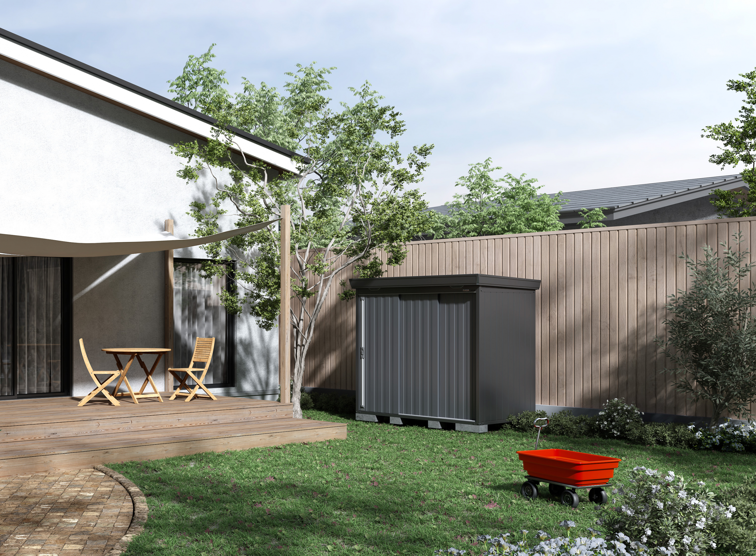 玄関まわりからガレージ、物置までが一体感を持って配置されることで、住まいはより整然とした印象に変わります。