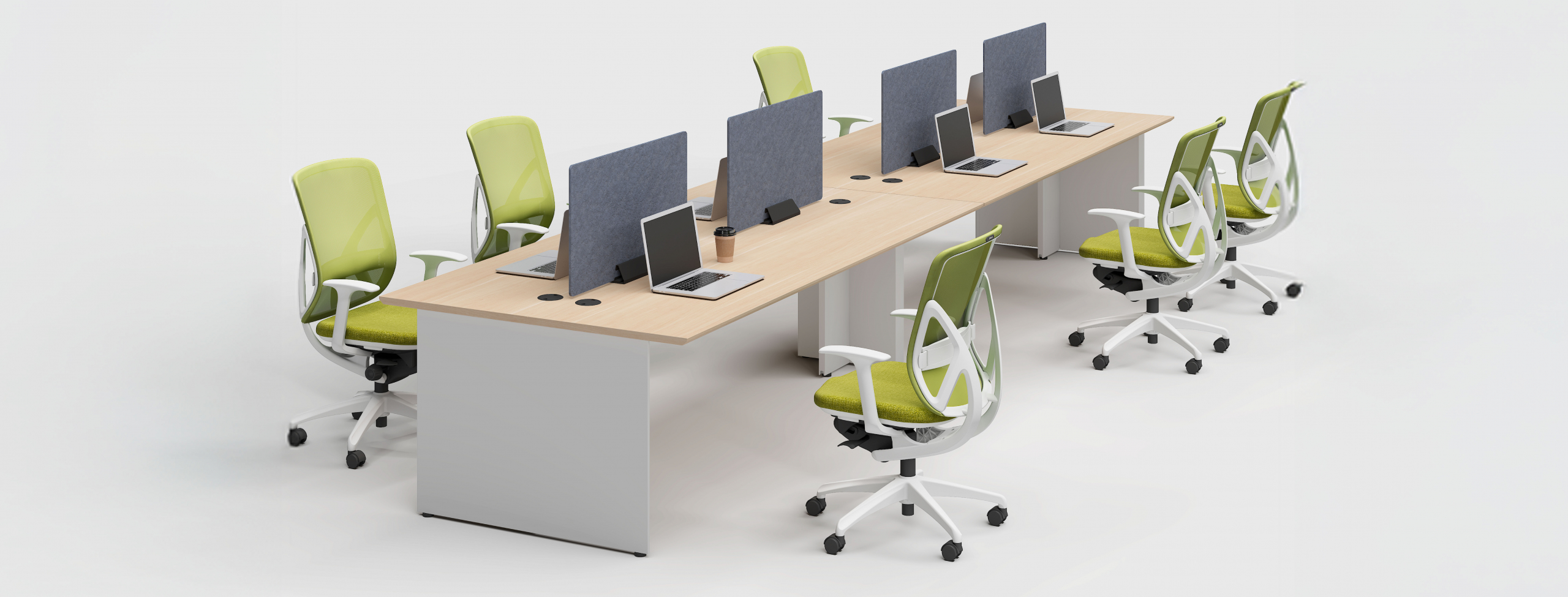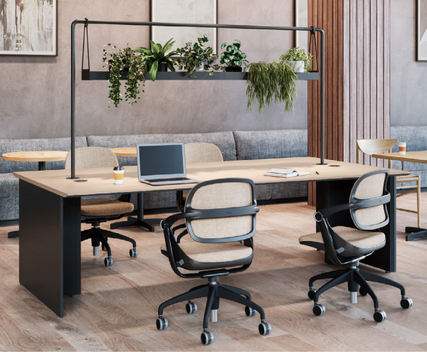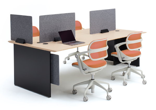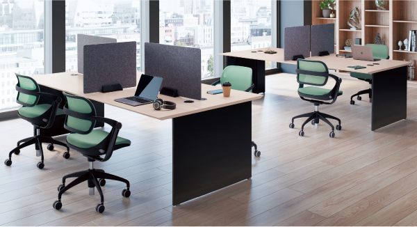 集中しながらもチームでのコミュニケーションも損なわないフレームレスパネルは空間を仕切りながらもすっきりとした印象を与えます。